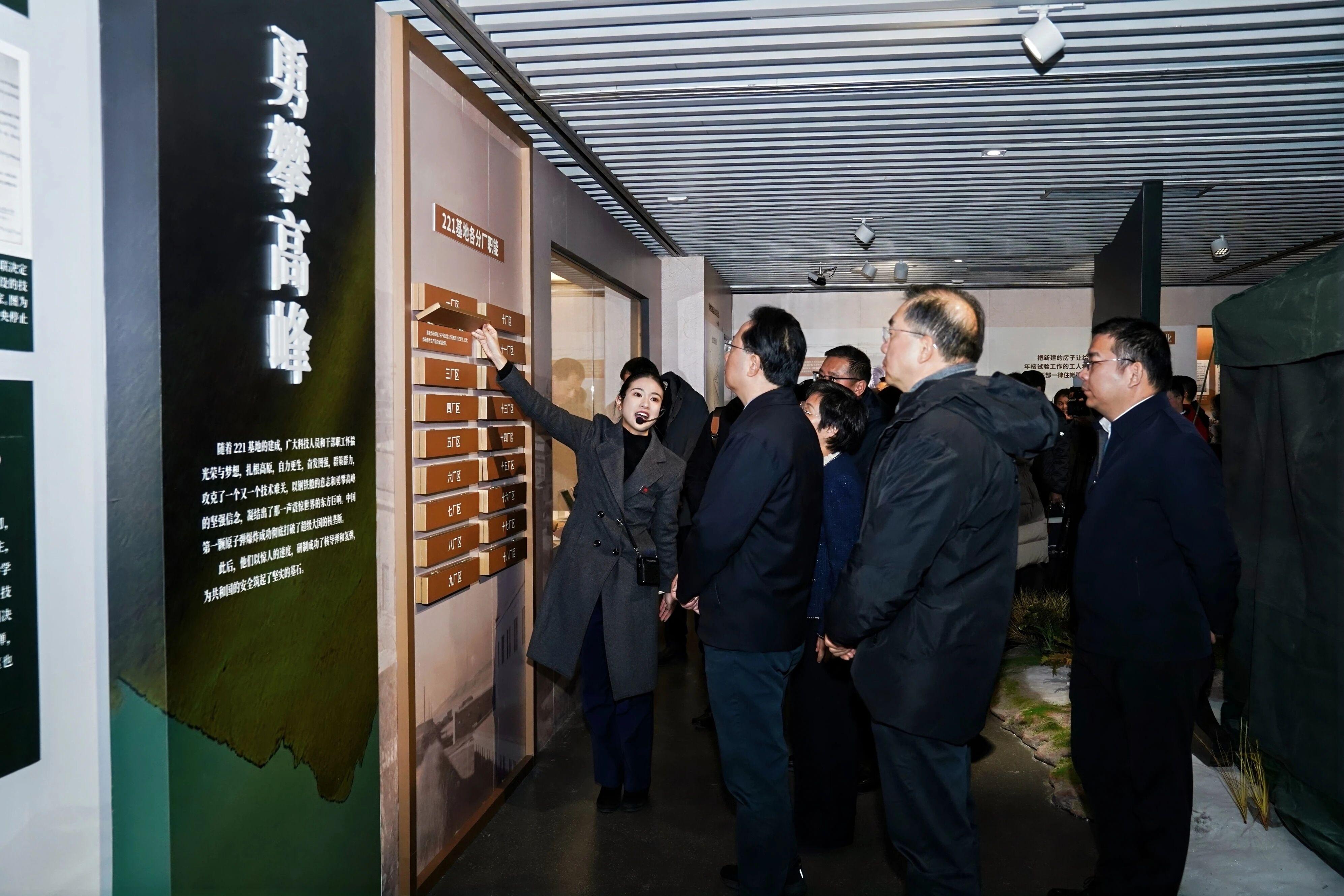 中共上海市委宣传部副部长、市电影局局长潘敏,中共上海市委党史研究室主任严爱云,中核集团核工业二二一离退休人员管理局副局长王立新,中共海北州委常委、宣传部部长、总工会主席张涛,上海市文化和旅游局党组成员、副局长金雷,原国营二二一厂二分厂党委副书记陈福良等领导、嘉宾出席了展览开幕式并为展览揭幕。