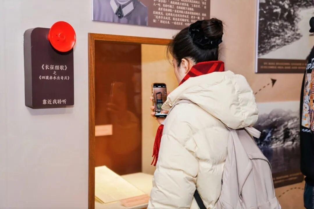 多处互动装置增强观众参与感:《随军西行见闻录》可立体翻阅,《长征组歌》声音装置贯穿展线,数字互动画面让观众融入艺术场景,多维度感受长征的情感厚度与精神力量。