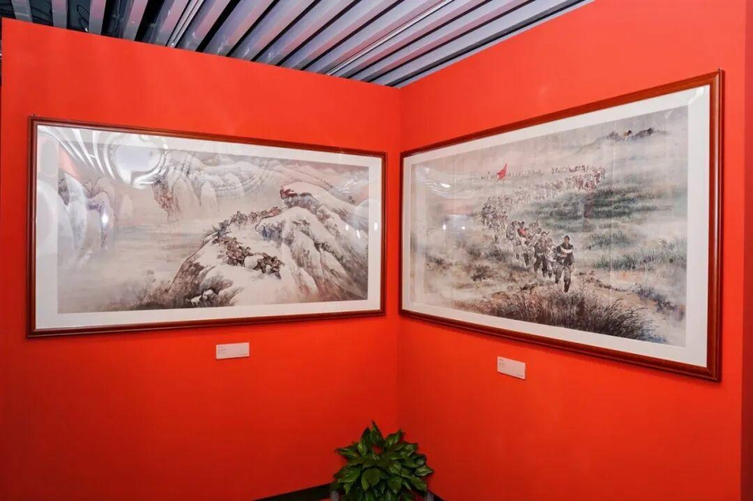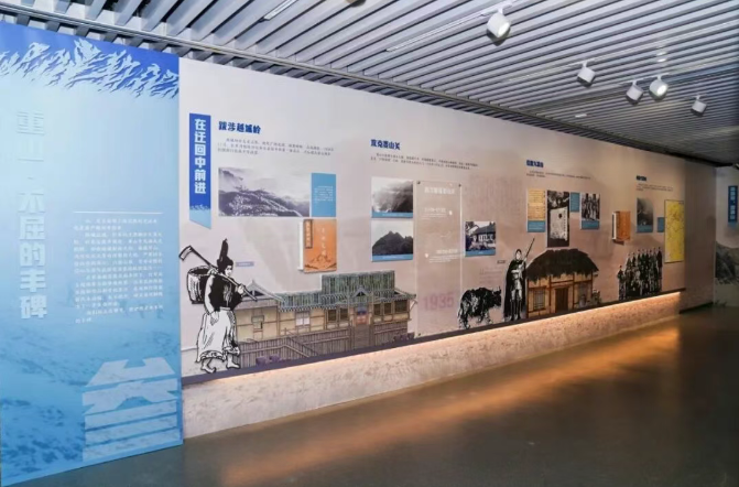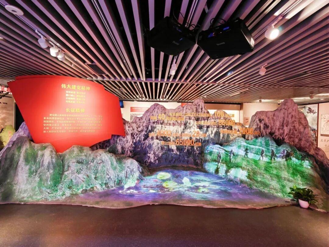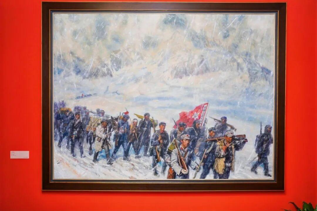 展览注重氛围营造与互动体验,运用场景复原、数字投影与声效装置,打造沉浸式观展空间。一楼序厅通过实体沙盘结合动态投影,立体呈现长征途中跋山涉水的艰辛历程。二楼特设“艺术中的红·长征”展区,集中展示馆藏油画《三军过后尽开颜》《过草地》及国画《大渡河》《过雪山》《过草地》等五幅作品,以艺术语言凝练长征精神。