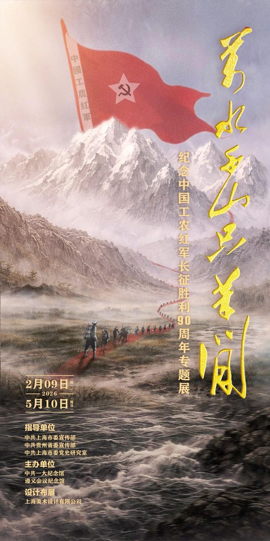 为纪念中国工农红军长征胜利90周年,深入学习贯彻习近平总书记关于用好红色资源、赓续红色血脉的重要指示精神,弘扬伟大建党精神与长征精神,2026年2月9日,“万水千山只等闲——纪念中国工农红军长征胜利90周年专题展”在中共一大纪念馆开幕。