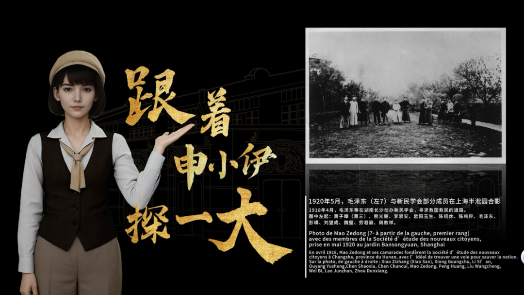 值得一提的是,本次云展全新推出《跟着“申小伊”探一大》首集《半淞园合影》,观众可跟随数字人“申小伊”,沉浸式体验萧三(萧子暲)、劳君展等新民学会会员赴法勤工俭学的历史片段。