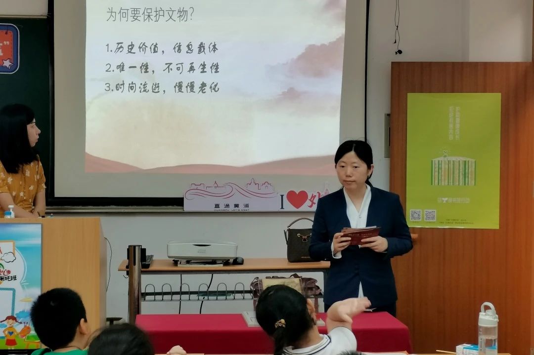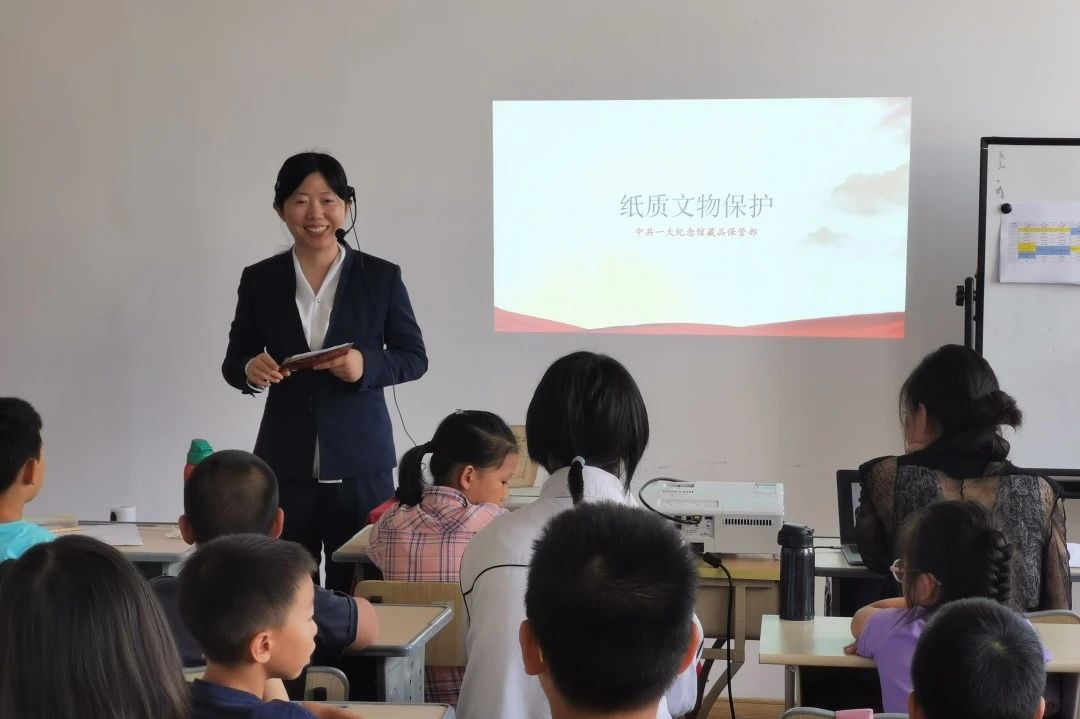 “温湿度对文物的影响非常大。以纸质文物为例,环境中温度过高,会加快一系列物理、化学反应,可能会导致空气中的灰尘、气体等物质的共同作用造成纸张纤维的破坏。”中共一大纪念馆藏品保管专员王欢欢为同学们讲述了纸质文物保护的重要性。