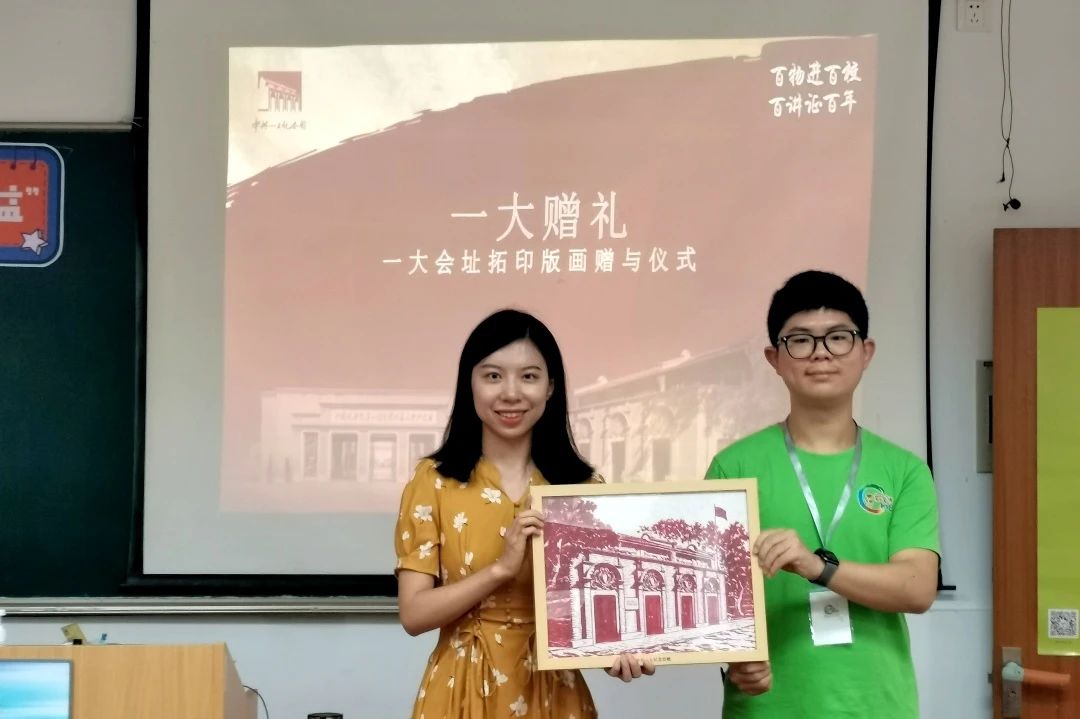 “新时代的少年们,先辈们手中的‘救国之笔’,已然跨越时空,交到了你们手中。愿中国的少年们,以梦为马,不负韶华,谱写下浩浩荡荡,波澜壮阔的崭新篇章。”活动中,中共一大纪念馆宣教专员朱晋瑶动情地向与会领导嘉宾和全校师生呈现了革命文物“少年中国学会会刊《少年中国》”,并深情讲述了文物背后的感人故事。