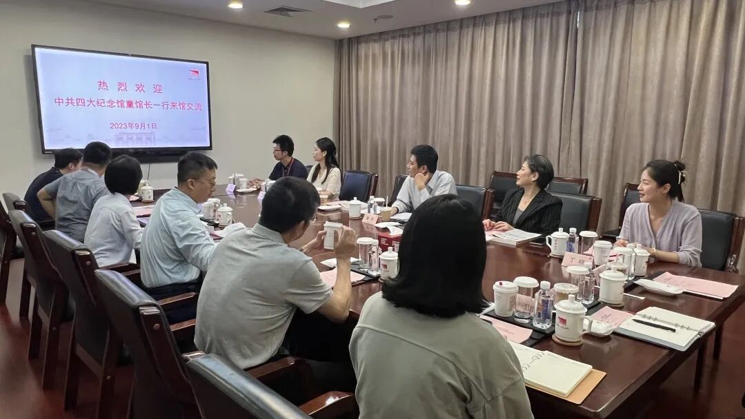 9月1日下午,中共四大纪念馆党支部书记、馆长童科一行来馆交流座谈。中共一大纪念馆党委书记、馆长薛峰,中共一大纪念馆党委副书记、纪委书记汤匀,中共一大纪念馆党委委员、副馆长阮竣,中共一大纪念馆党委委员、副馆长徐云根出席此次会议。